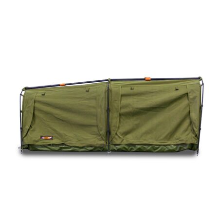 The 23Zero Bandit offers 4 entries, providing campers with interior climate control. Made of 400GSM poly-cotton canvas, the Bandit provides class-leading strength and durability. Free-standing Panoramic views and ventilation Full zip-down storm covers Fully seam-sealed 2.75 inch hi-density thick foam mattress 85″ L x 43″ W x 33.5″ H